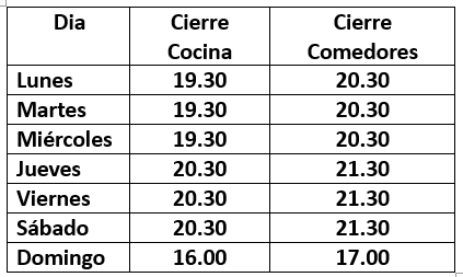 Las reservas sólo de lunes a viernes, exceptuando feriados y festivos